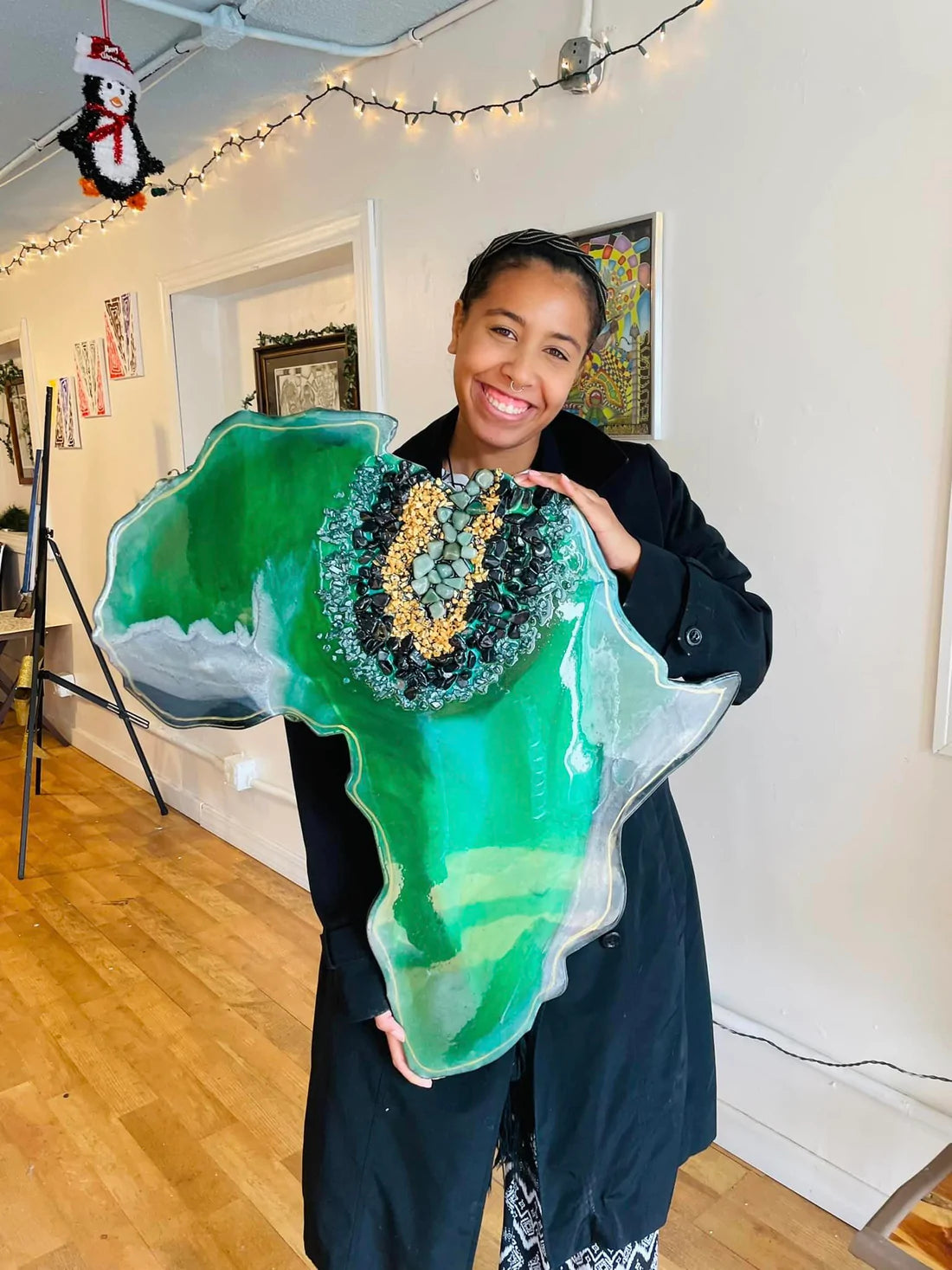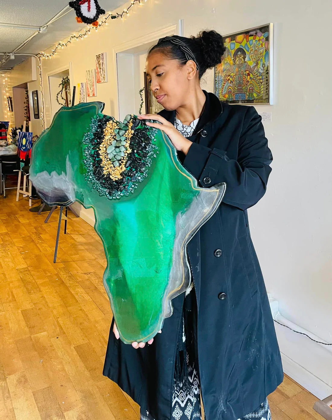 “My Africa geode art pieces speak to me because they remind me of my roots. The art reminds me to remember. To remember that there is more to explore. More to the depths of my identity. There is a continent so luscious with a deep history attached to my ancestry. I remember where my ancestors come from and I am proud.